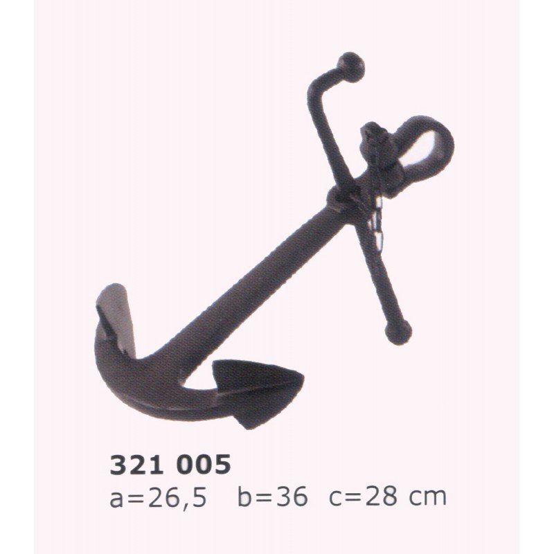 Reproducción marinera de un ancla almirantazgo o de cepo de aluminio pintada en color negro mate para decoración náutica.