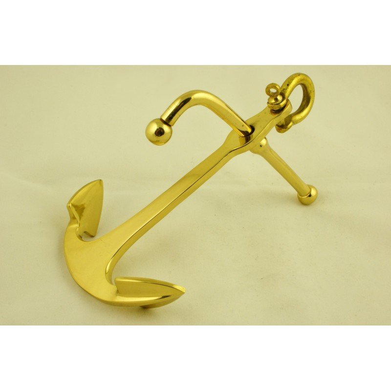 Típica ancla marinera de almirantazgo o de cepo elaborada artesanalmente en latón macizo y pulida brillante.