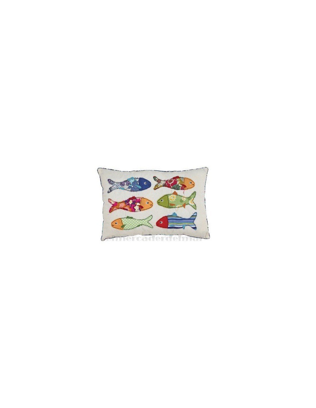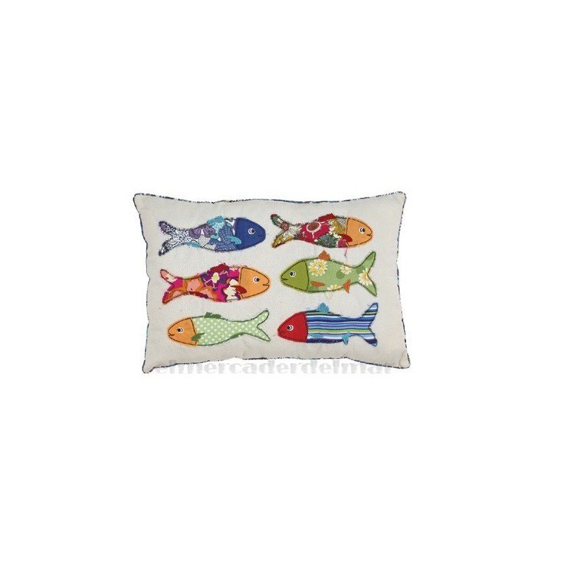 Cojín náutico de algodón con relleno y seis peces confeccionados con telas de colores