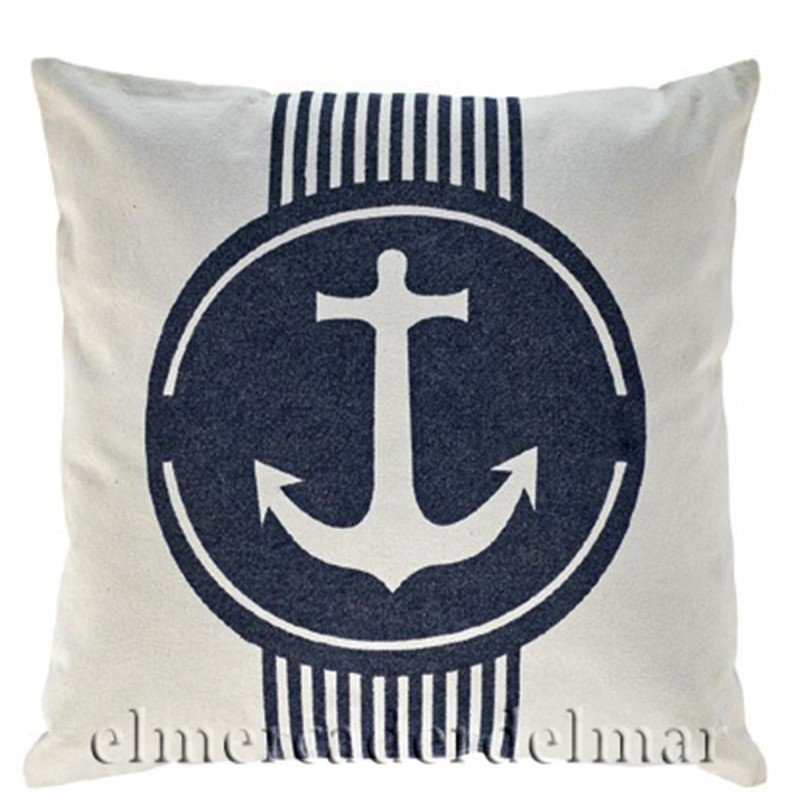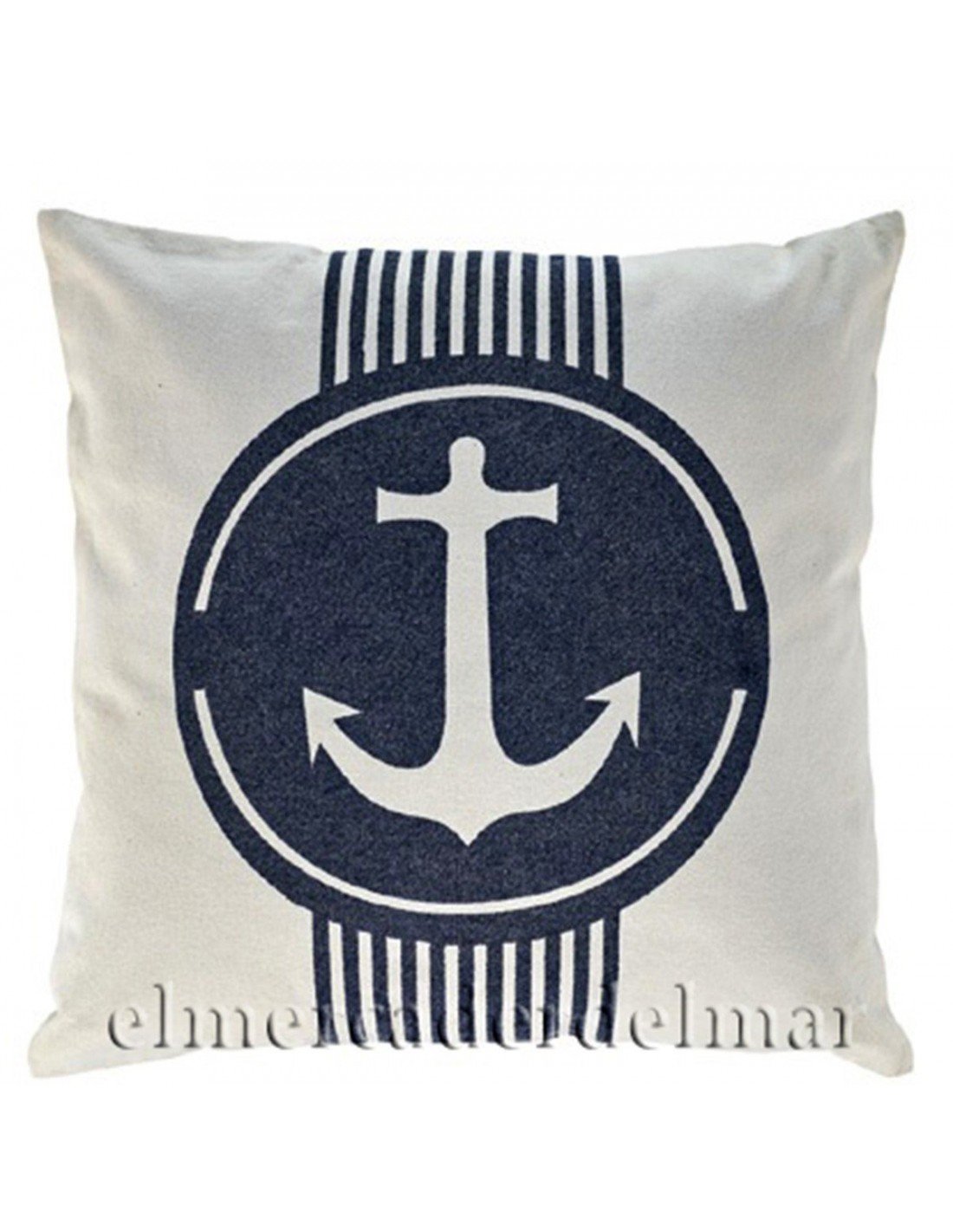 Cojín marinero fabricado en algodón de color blanco y con estampación de ancla sobre fondo rallado. Desenfundable y con relleno incluido.