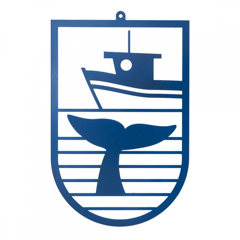 Cuadro mural de pared pesca de ballena en metal. Ideal en la decoración de una terraza marinera.