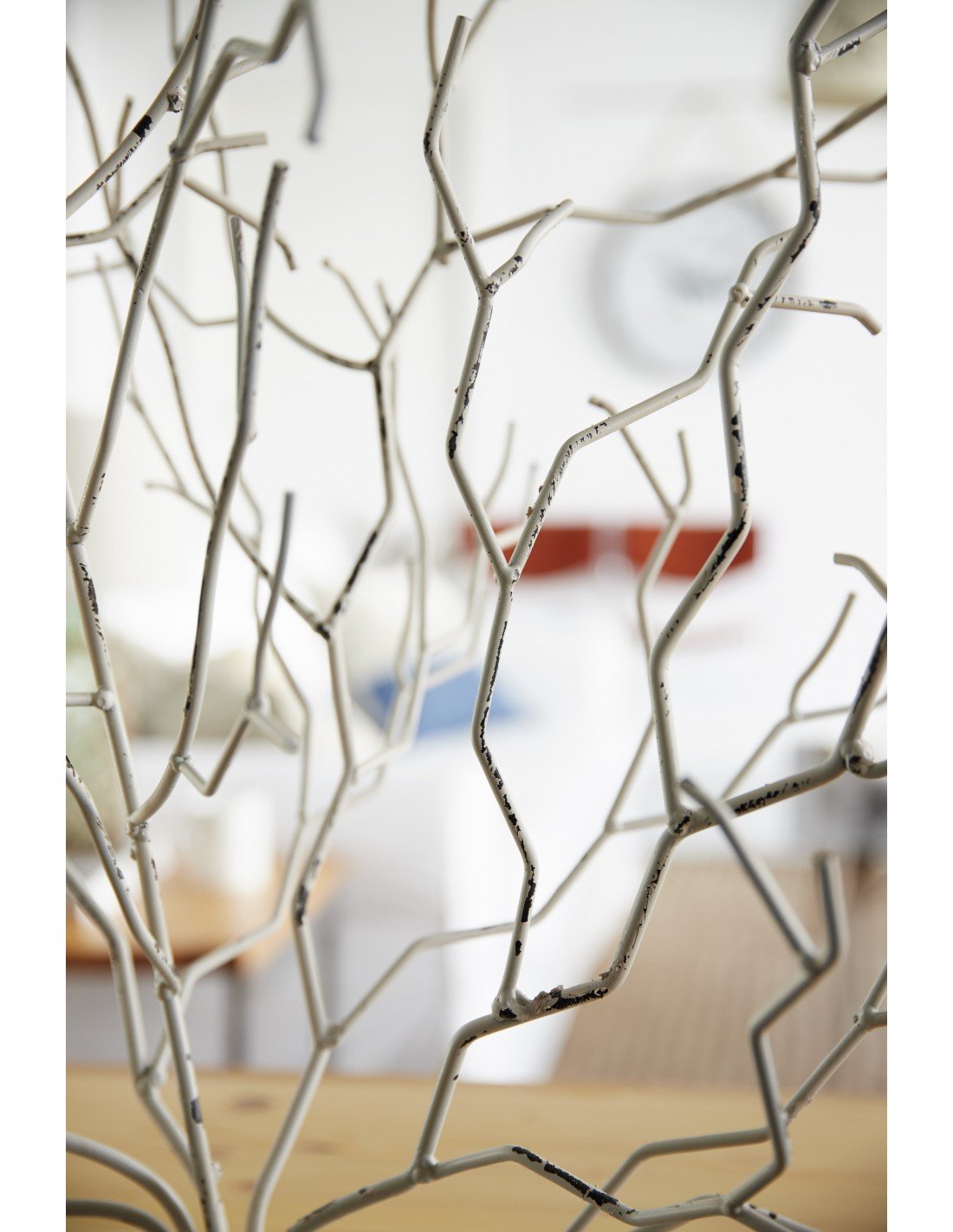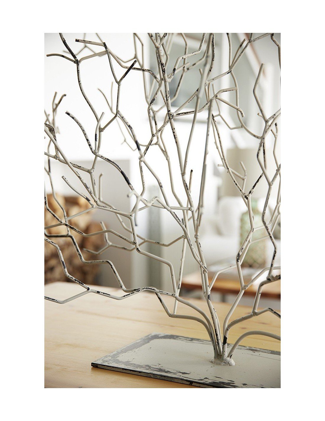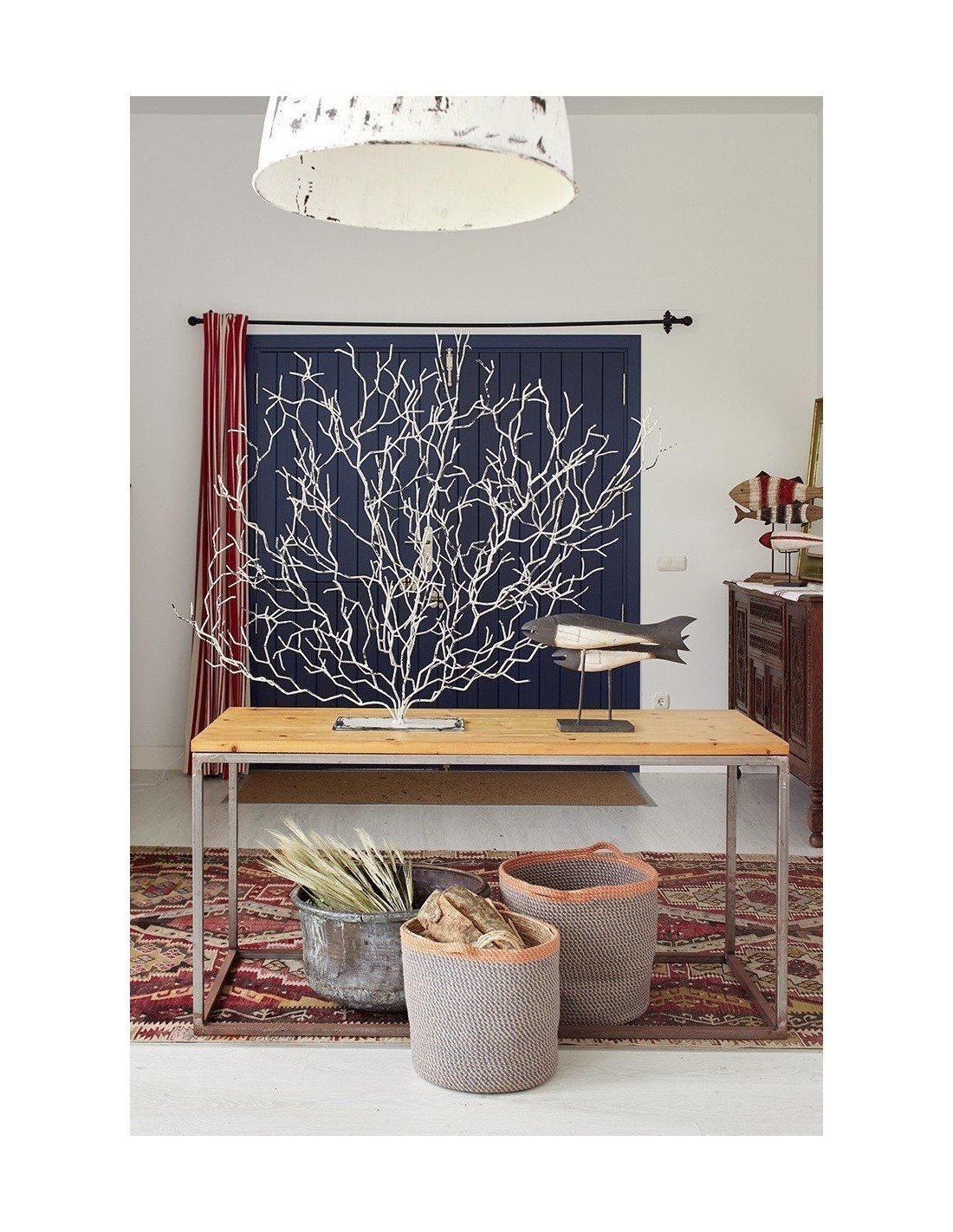 Figura coral náutico para decoración marinera de ambientes. Fabricado en metal con leves desgastes en sus ramificaciones ya que se trata de un artículo fabricado artesanalmente. El color blanco de sus ramas resaltará con la decoración marinera de salones con fondos azules. Presenta una base en metal que soporta la estructura del coral.