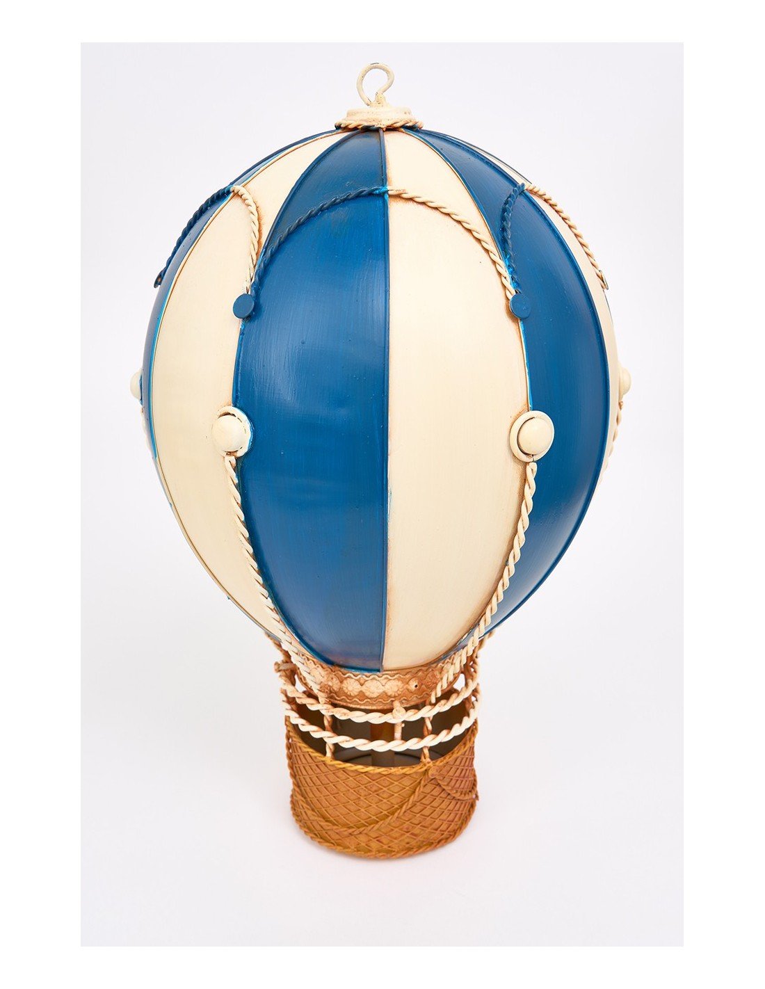 Globo decorativo grande en metal azul y beige, con un elegante estilo vintage para decorar los muebles de tu hogar.