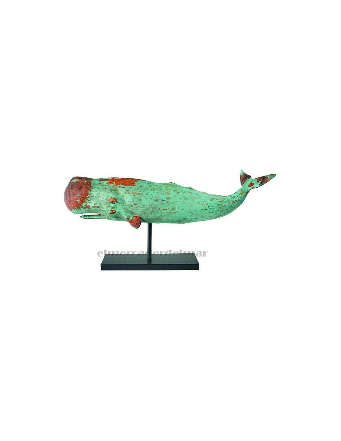 Talla de Cachalote realizada en resina de excelente calidad. Color verde agua envejecido. Con base de color negro.