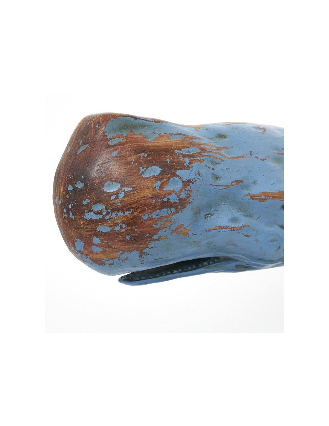 Escultura cachalote en resina con base. Figura decorativa de diseño moderno, fabricada en resina imitando la madera, con excelentes acabados. Pintado en color verde agua efecto envejecido.