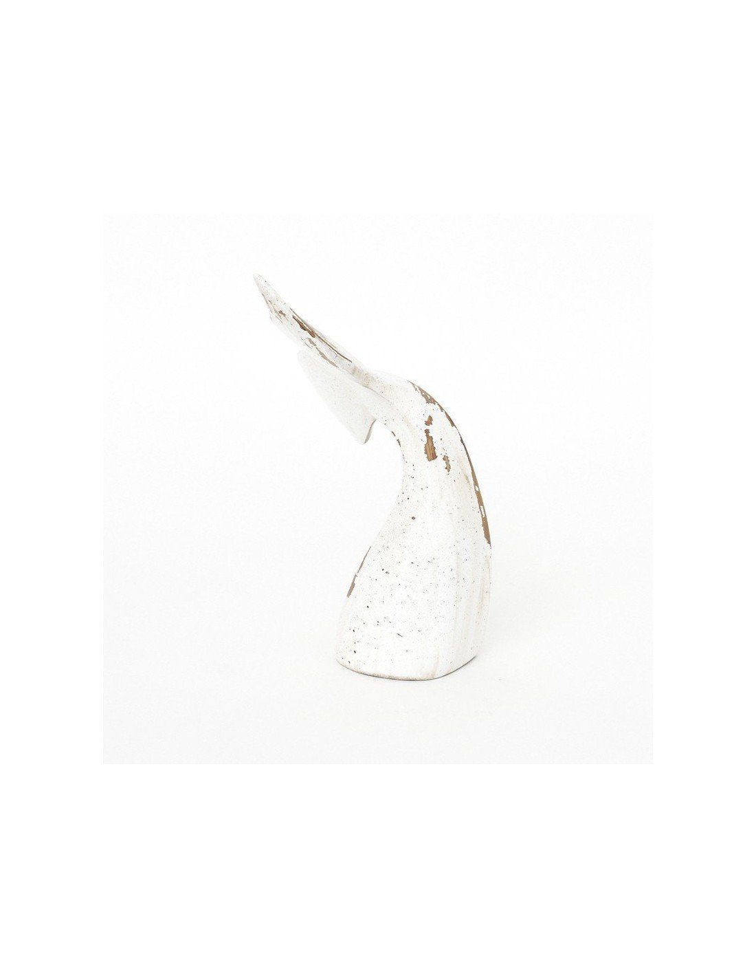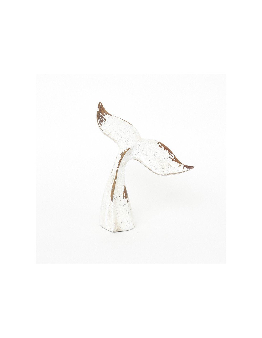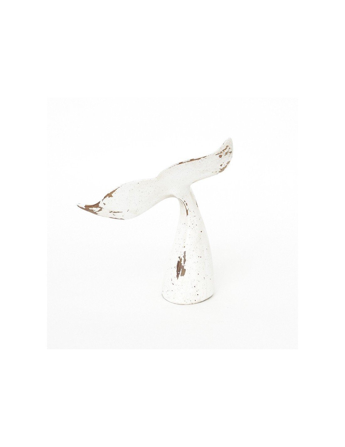 Escultura cola de ballena marinera hecha a mano en resina imitando la madera con excelentes acabados. Pintada a mano en tono blanco, diseñada con efecto desgastado lo que le confiere un aire rústico a la pieza. Figura náutica que representa una cola de ballena emergiendo del océano para ambientar estancias con un toque realista. Perfecta para exhibirse sobre el mobiliario del hogar.