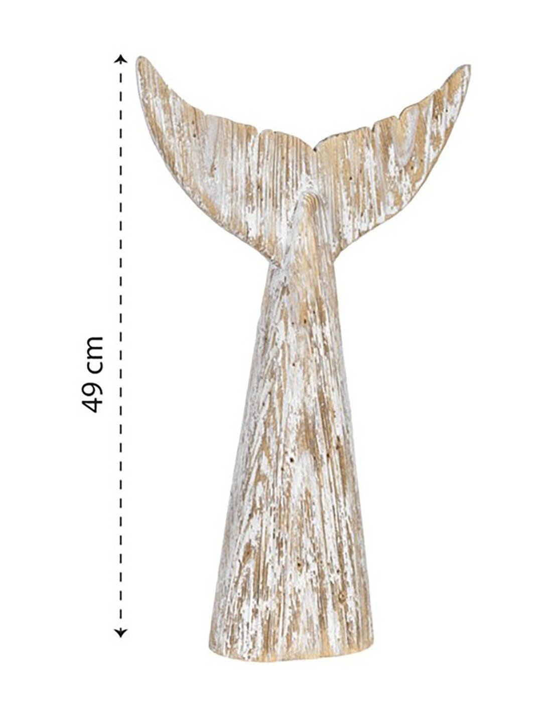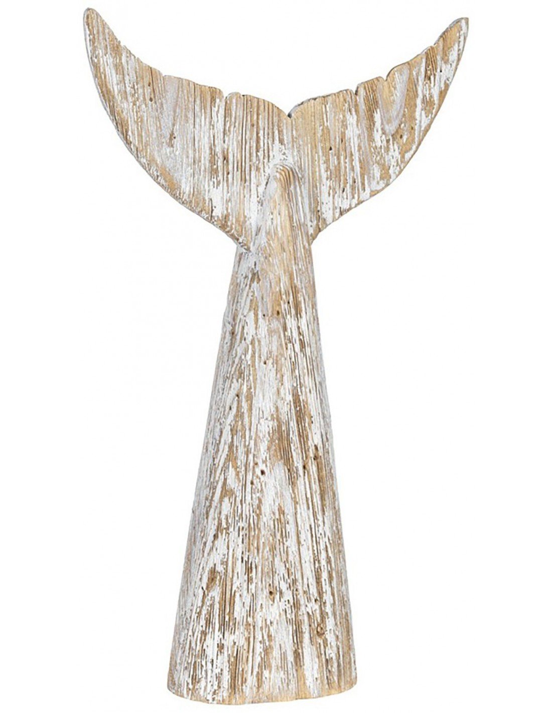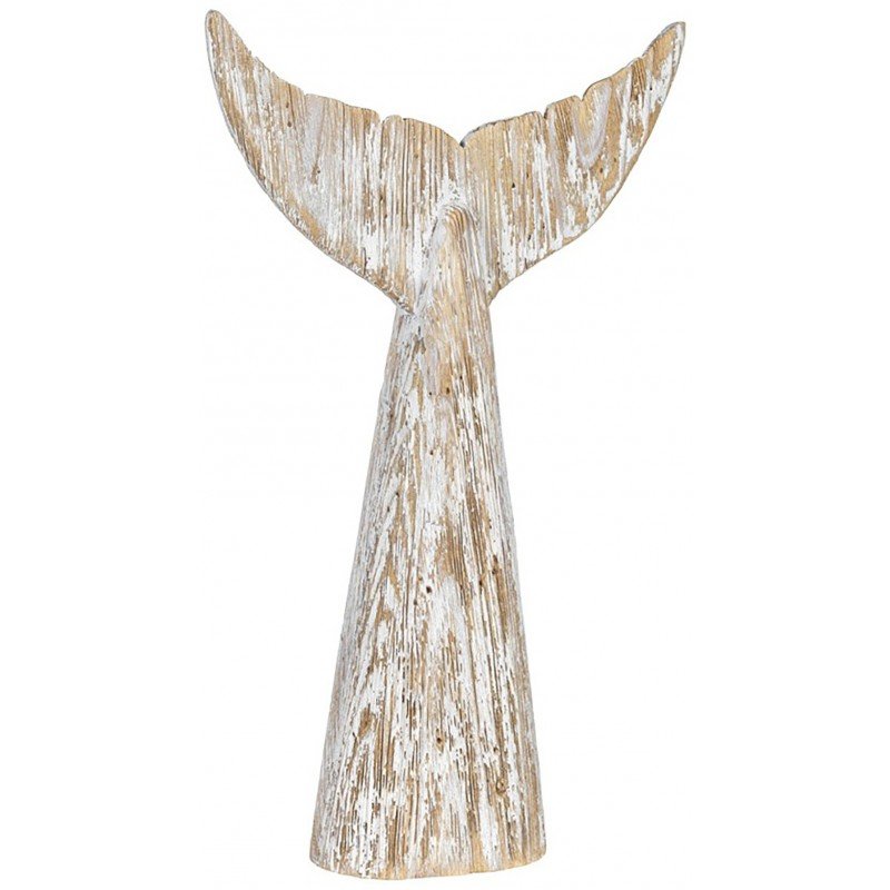 Escultura decorativa de cola de ballena hecha en madera al estilo vintage. Esta pieza marinera está elaborada y pintada a mano. Primero se talla la madera reflotada y se da la forma de cola de ballena, por último se añade el color blanco para después rascar la pintura dando como resultado una pieza al estilo rústico.