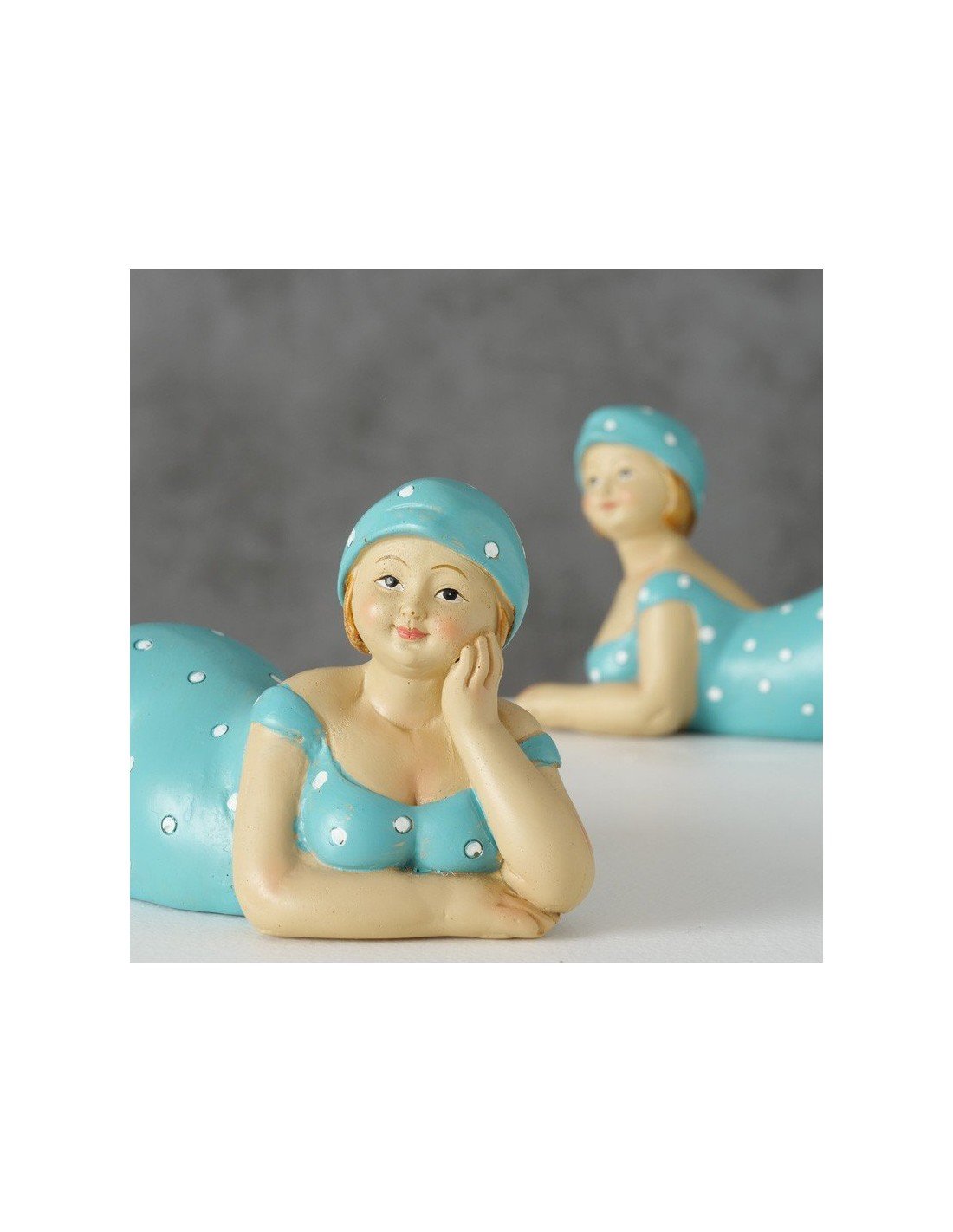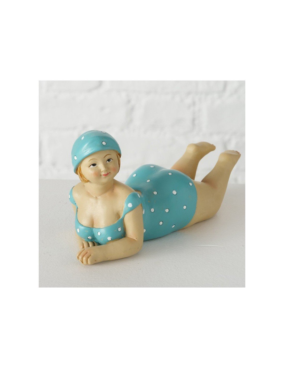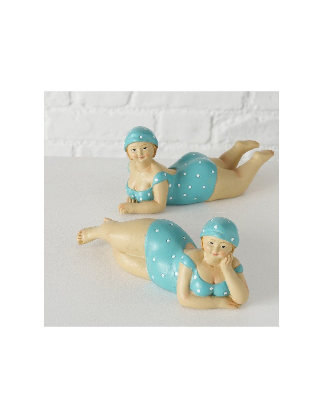Figura náutica de bañistas de la época de los años 30 fabricadas en artesanía náutica en resina y pintadas a mano con alegres colores.