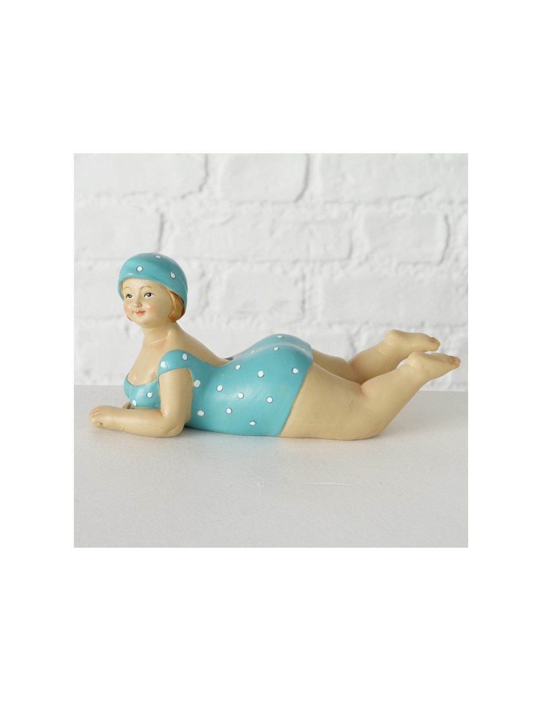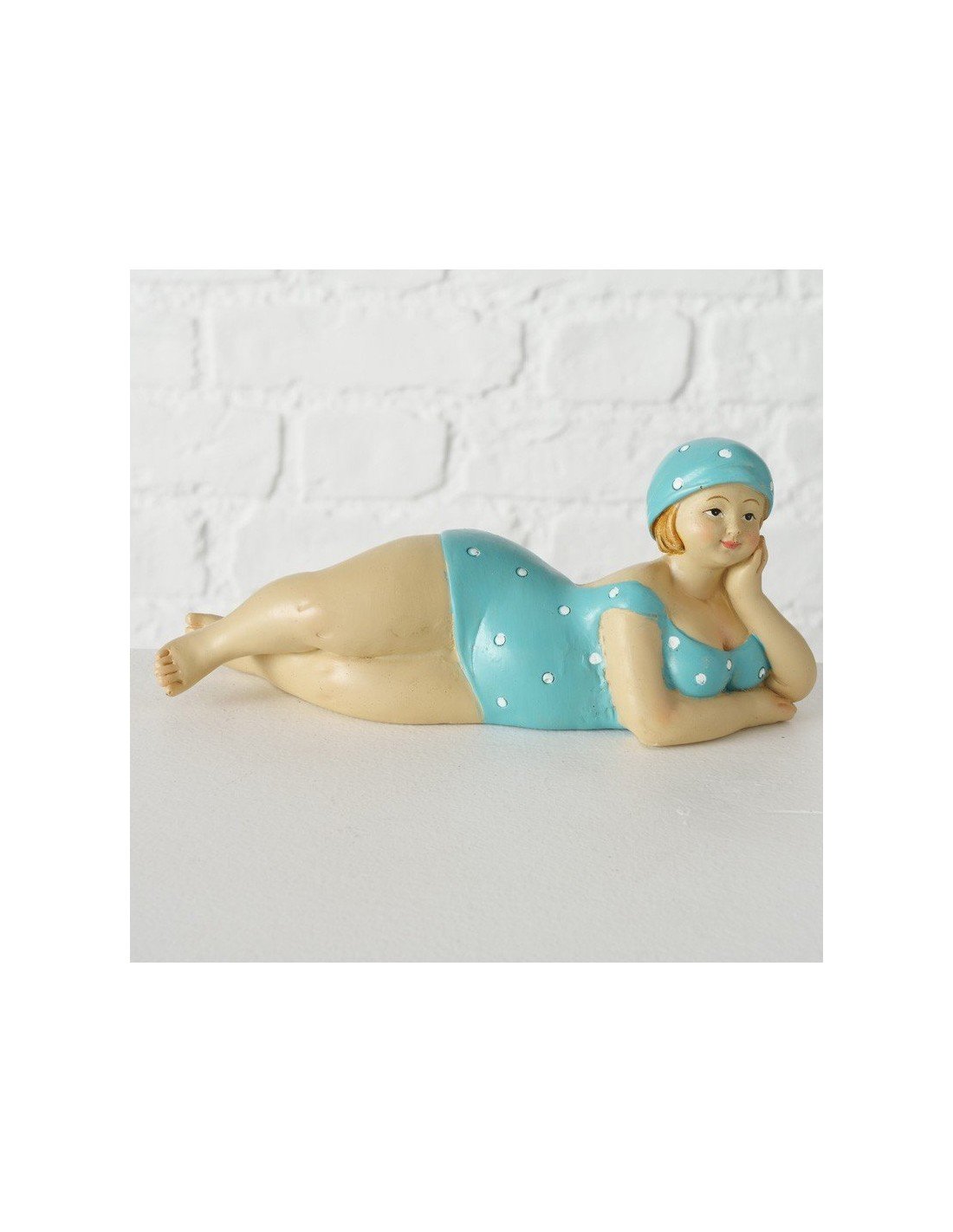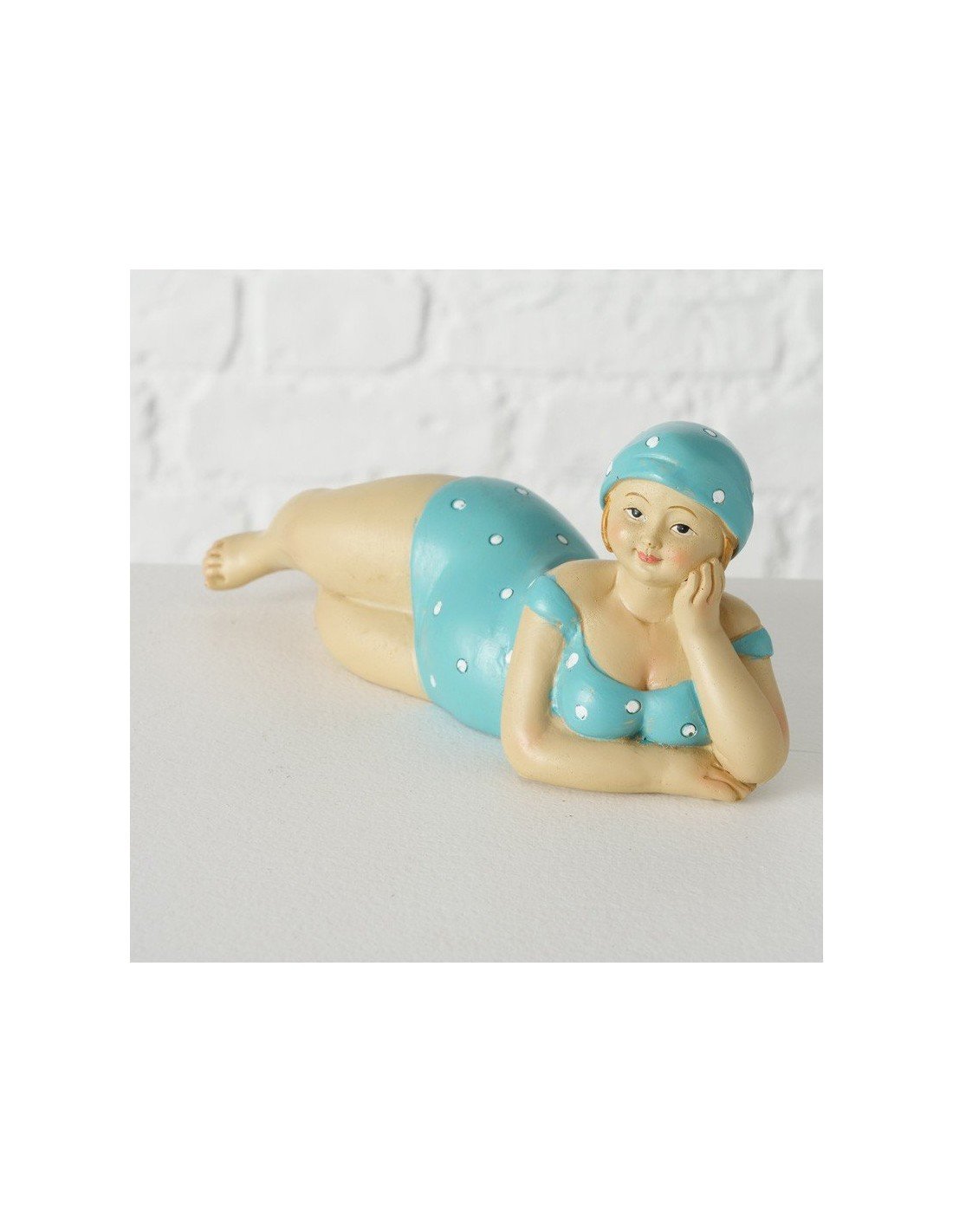 Figura náutica de bañistas de la época de los años 30 fabricadas en artesanía náutica en resina y pintadas a mano con alegres colores.