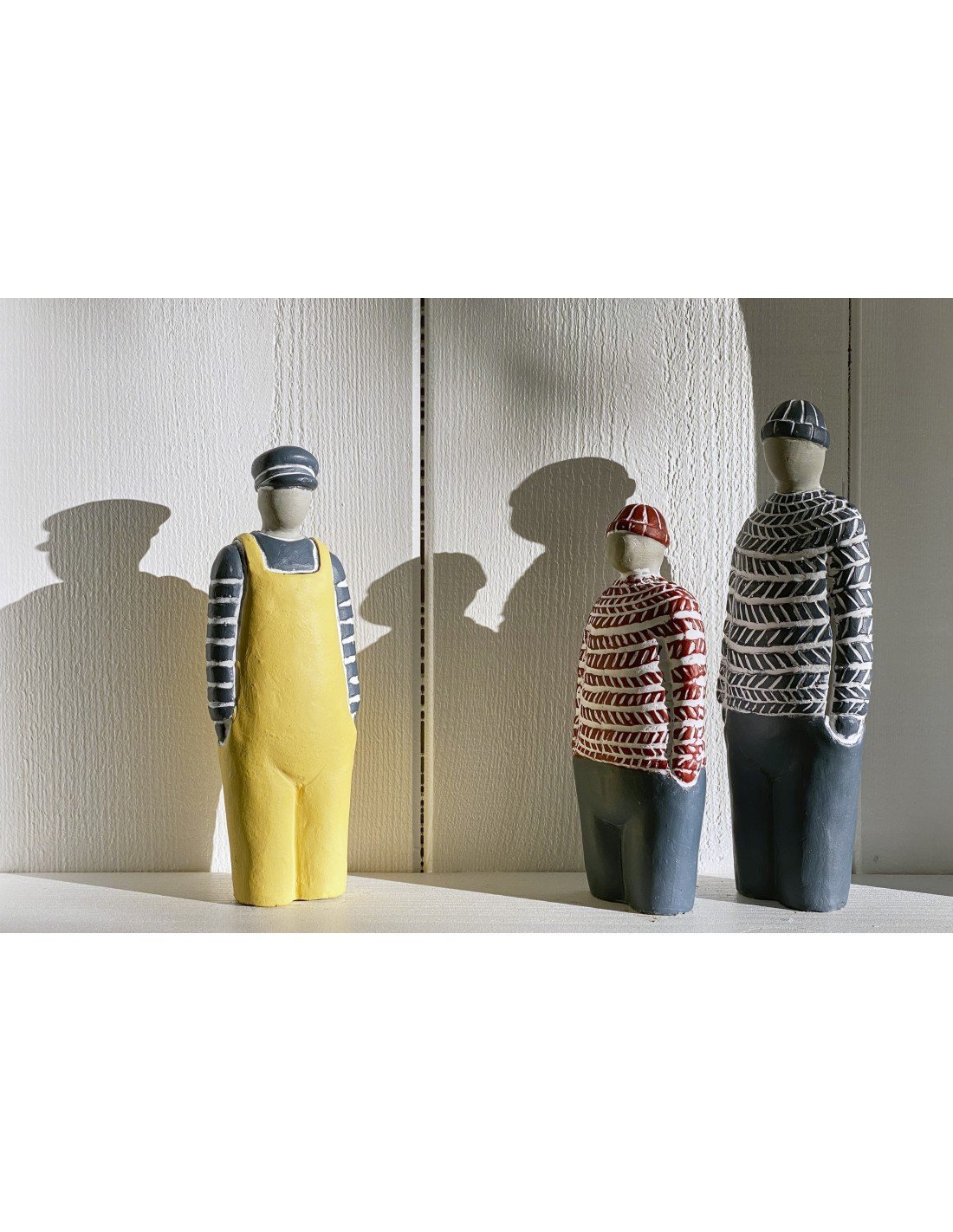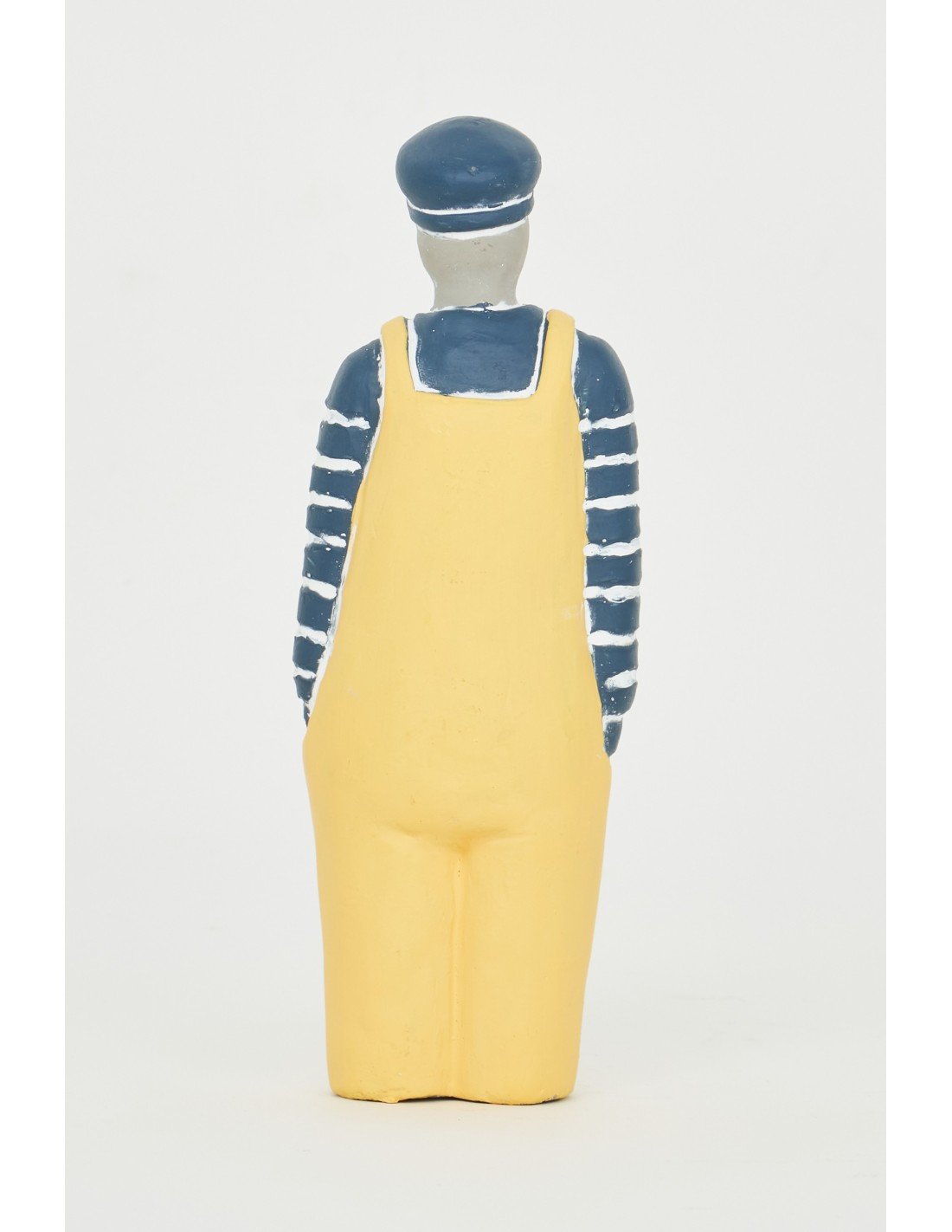 Una figura de marinero con traje amarillo y gorra azul, confeccionada en cemento resistente, perfecta para dar un toque náutico a tus muebles. Esta pieza detallada agrega un encanto marinero a cualquier espacio, ya sea en estantes, escritorios o mesas.