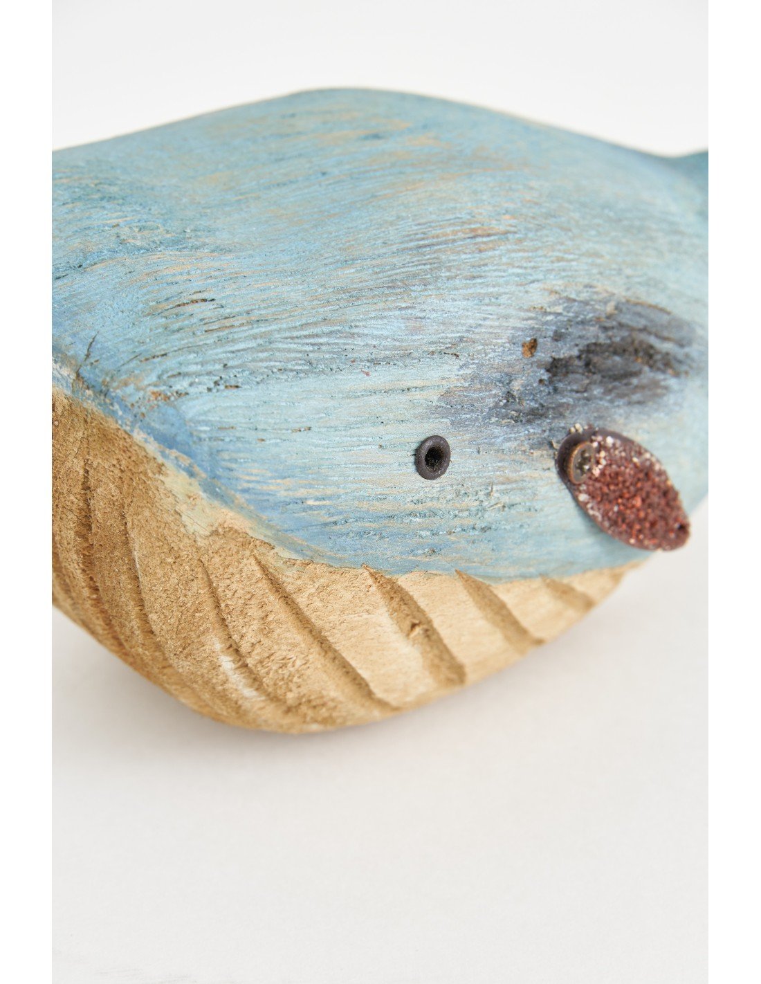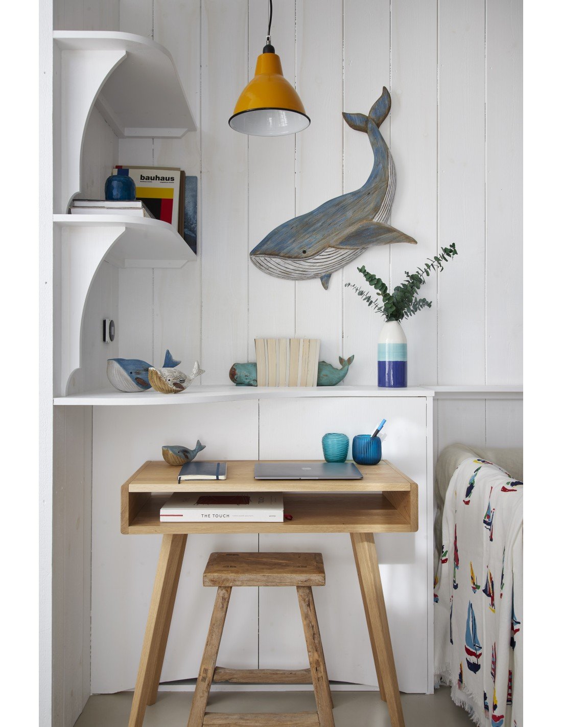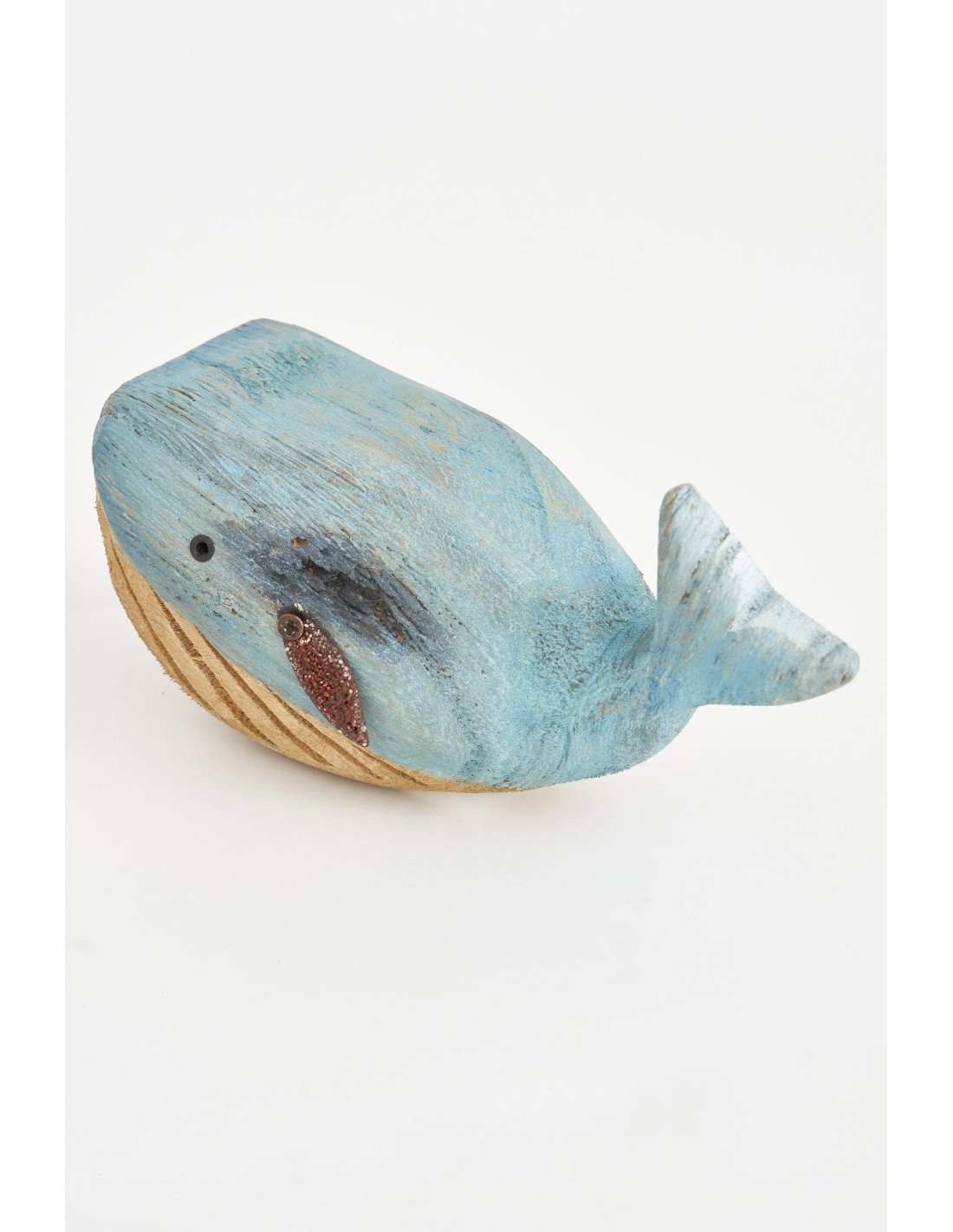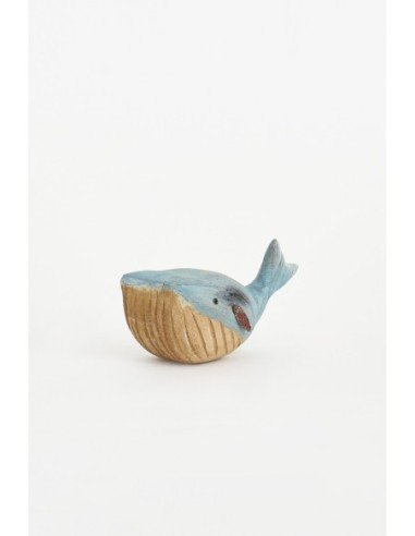 Esta ballenita celeste de madera y metal, con un toque vintage, es una pieza decorativa única que añade un encanto marítimo a tu hogar. Perfecta para alegrar estanterías o mesas con su dulce presencia.