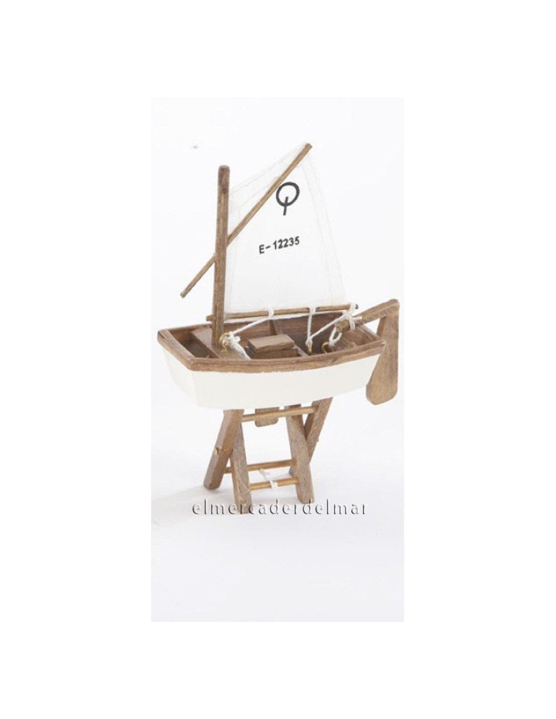 Maqueta naval del popular velero de clase internacional elaborada artesanalmente en madera con peana.