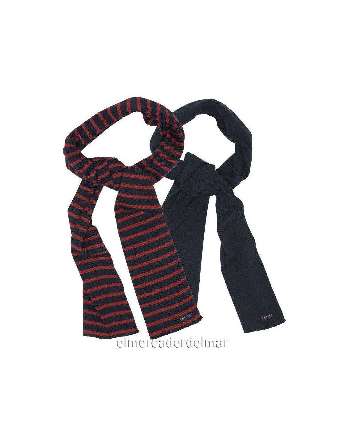 Bufanda náutica elaborada en lana a rayas y lisa, muy cómoda.