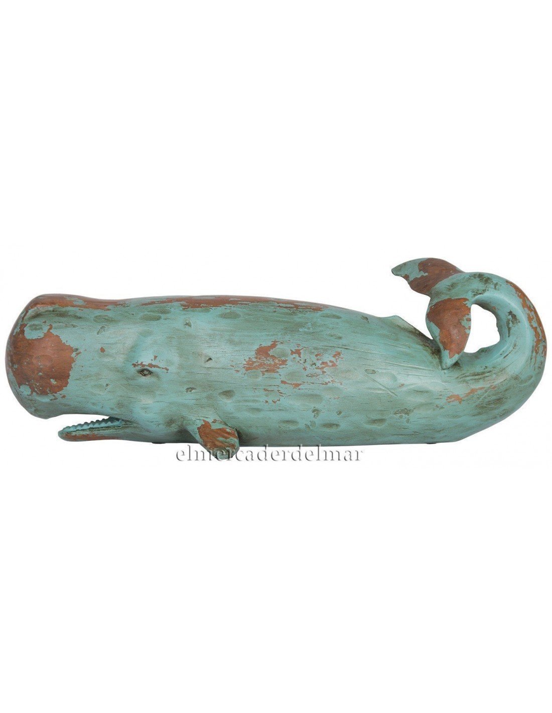 Cachalote marino en color turquesa fabricado en resina de gran resistencia y acabado imitación madera envejecida.