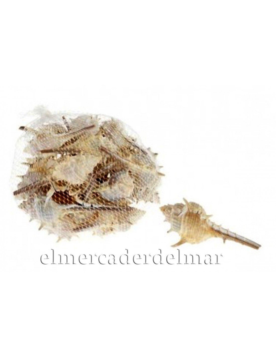 Caracoles de mar naturales de la familia de los Muricidae originarios del océano índico y pacifico. Se presentan en una bolsita de red de nylon que contiene aproximadamente 200gramos.