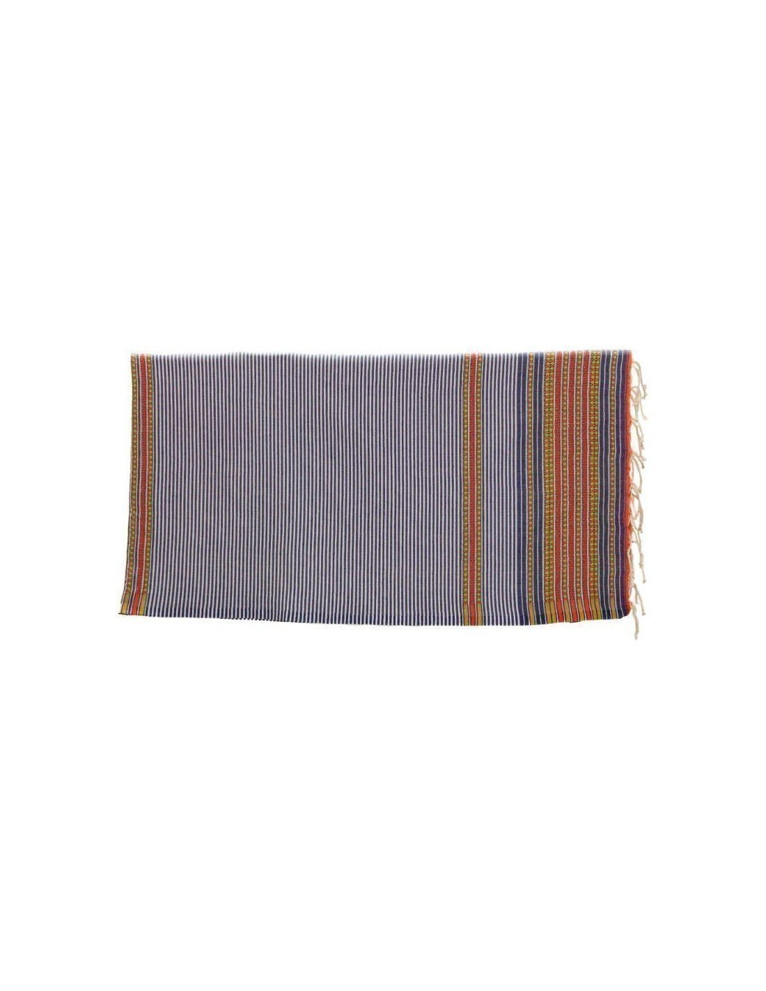 Pareo Fouta de Tejido Plano | Modelo Berber azul/naranja 1 m x 2 m