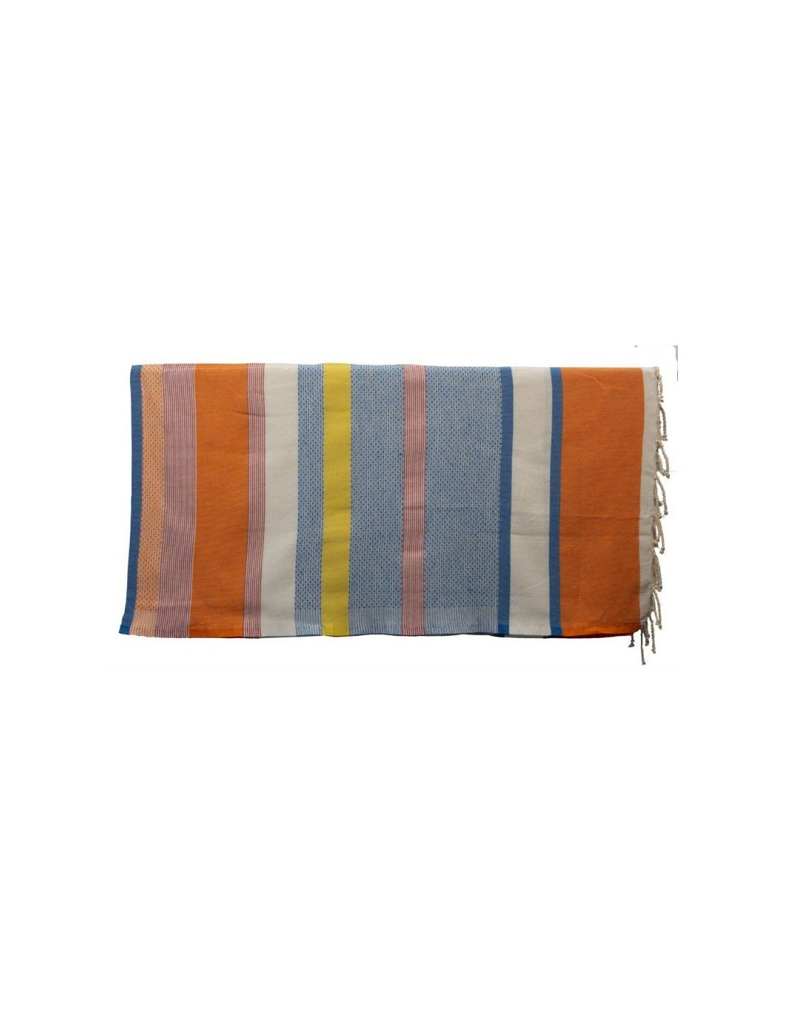 Toalla Fouta polivalente de tejido 'nido de abeja' de color naranja ideal para la playa o para para cubrir el sofá.