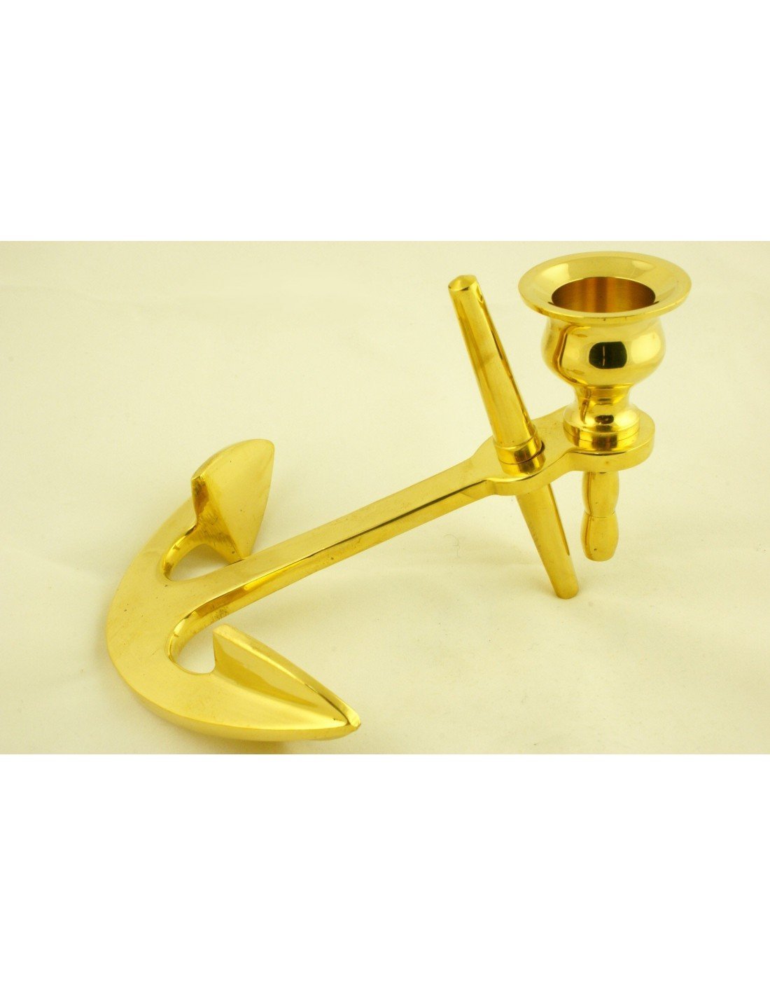 Candelabro de latón macizo y pulido brillante para vela de un ancla marinera para la decoración náutica o como regalo náutico.