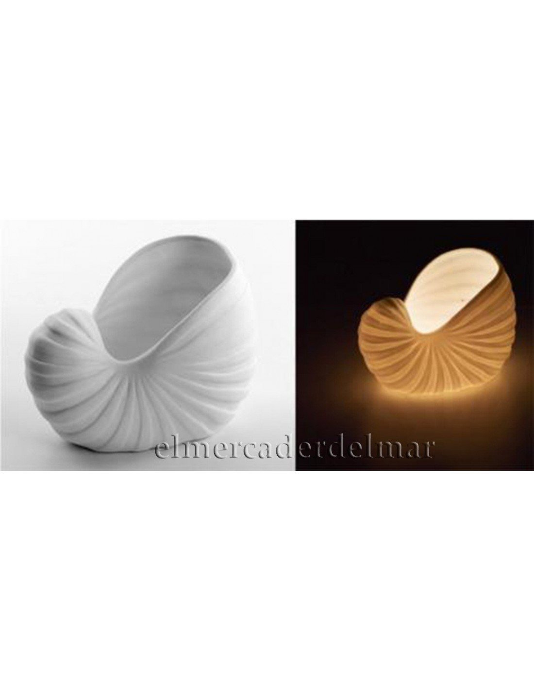 Caracola porta velas marinero elaborado artesanalmente en porcelana blanca con vela de té en el interior.