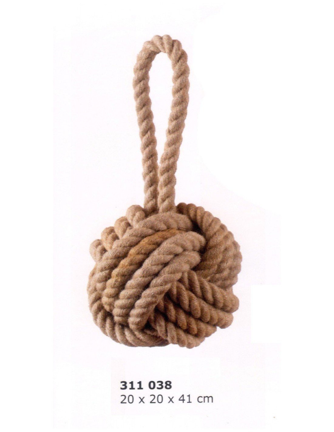 Con esta defensa de un nudo utilizado en el mar y con el particular nombre de puño de mono y hecha con cabo de fibra natural en cáñamo podrá decorar sus espacios de ambiente marinero, se podrá utilizar como sujeta puertas, para colgar o simplemente como elemento decorativo marino encima de una mesa o estantería.