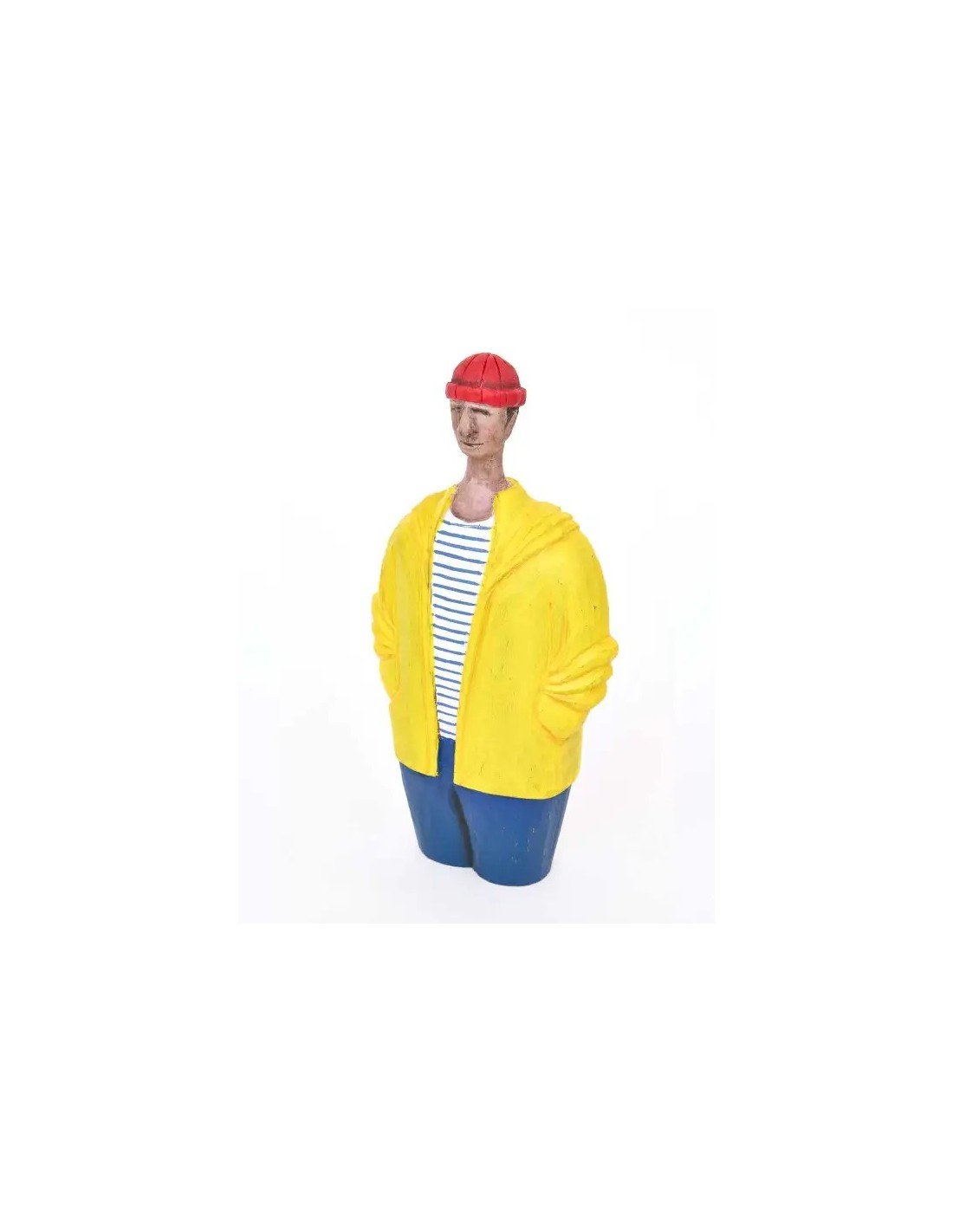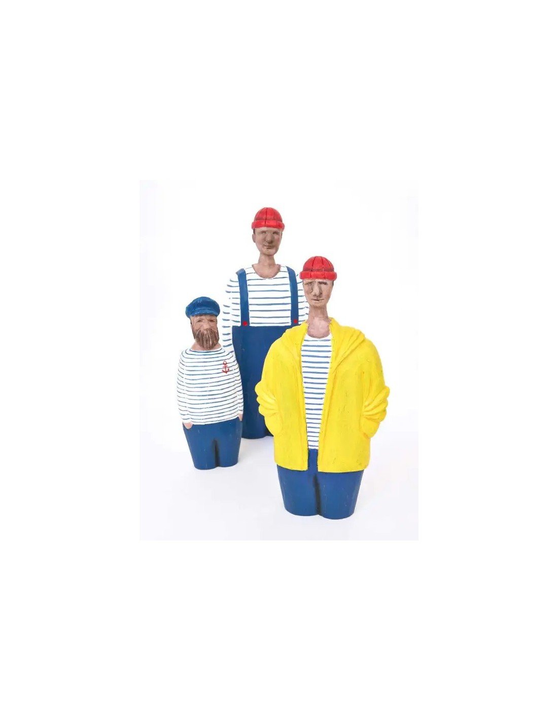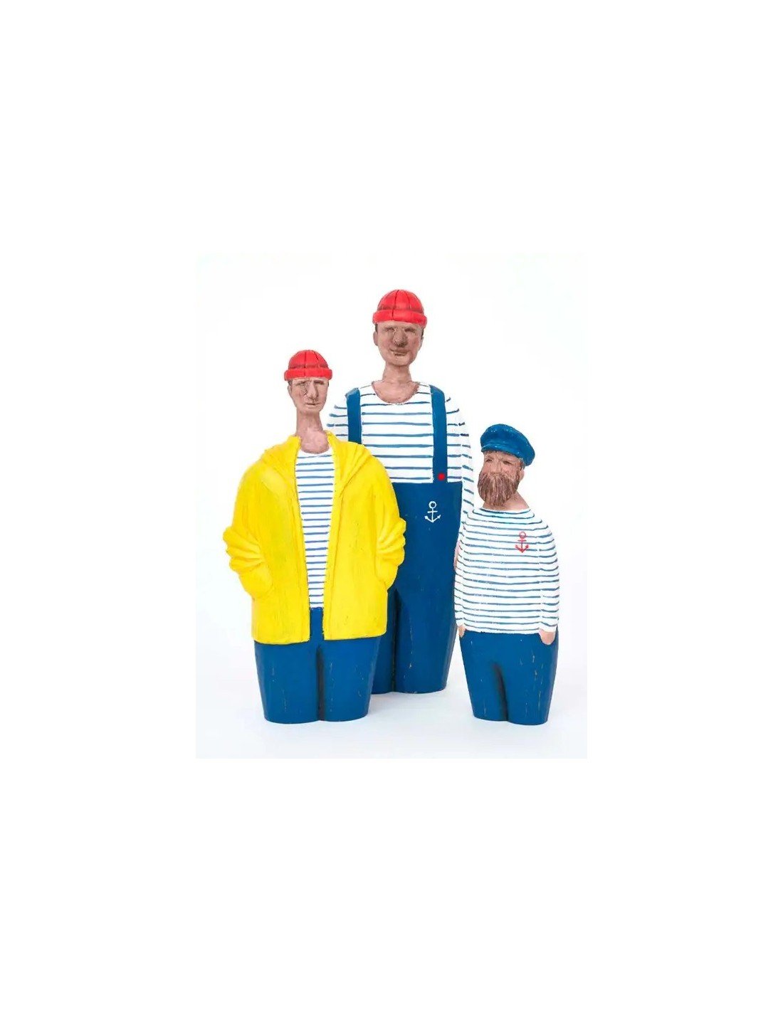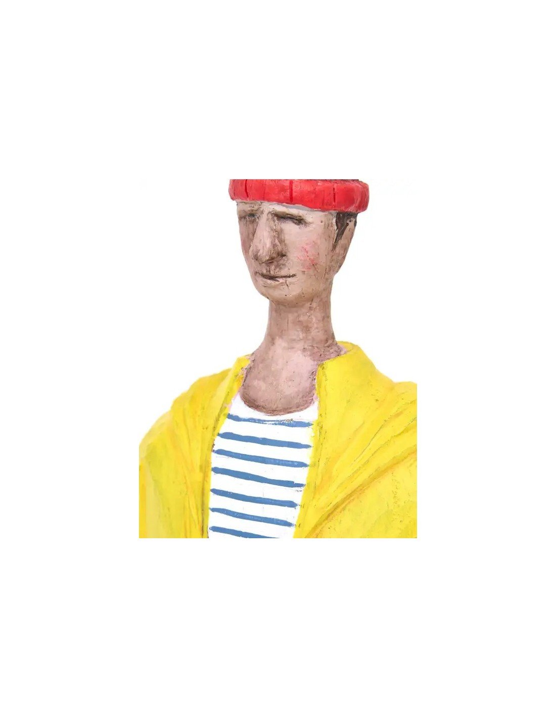 Figura de marinero en madera tallada y pintada a mano para decorar interiores con decoración marinera.