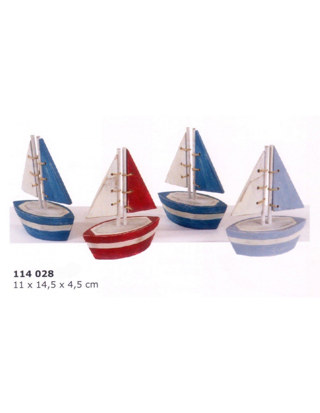 Velero rustico con vela de madera elaborado artesanalmente y pintado a mano en alegres colores que lo hacen muy indicado para souvenir o regalo en sus celebraciones.