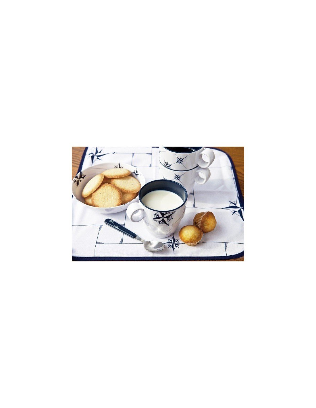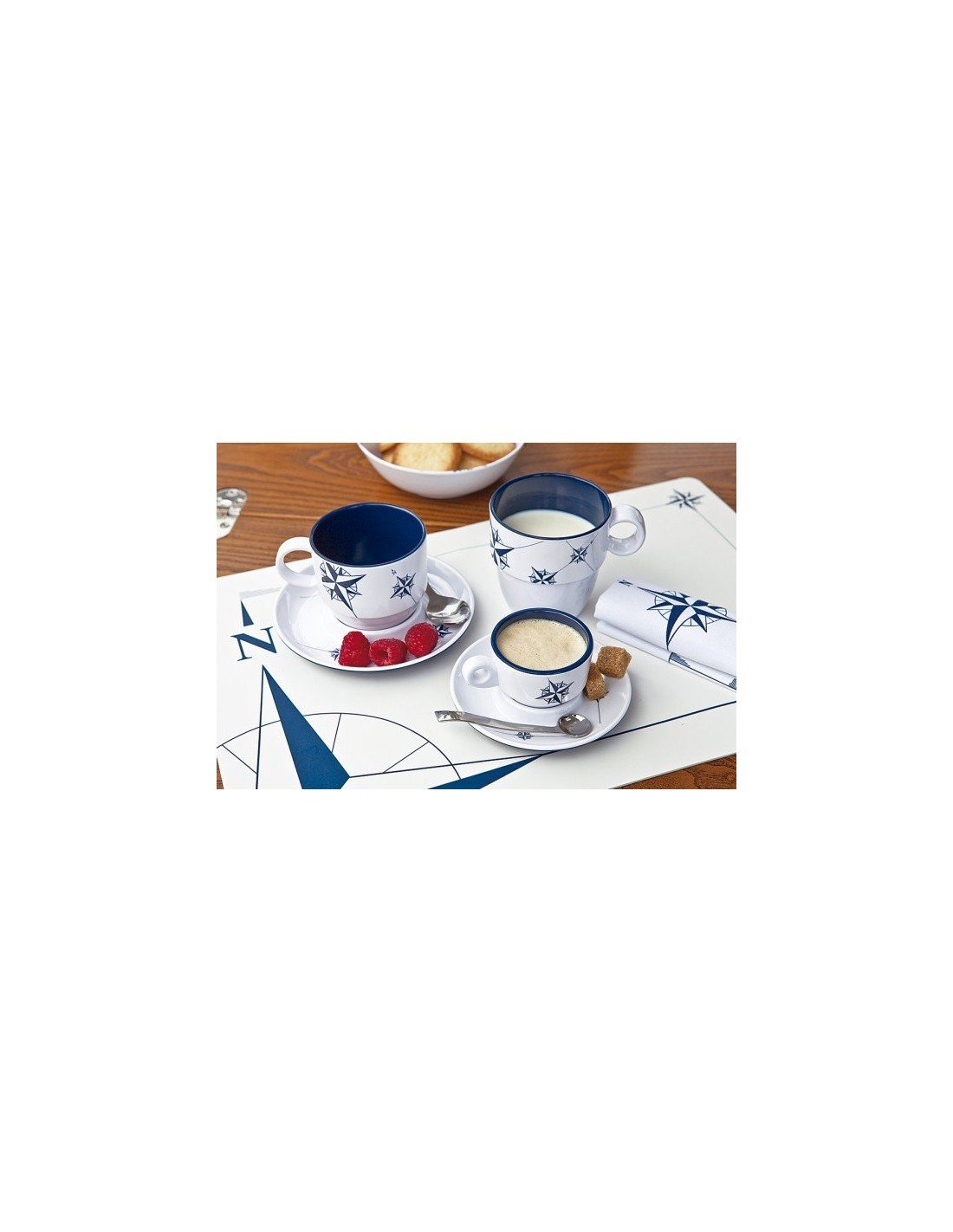 Estas tazas de estilo náutico están manufacturadas con melamina, un material de resina de gran durabilidad y resistencia, a prueba de golpes.