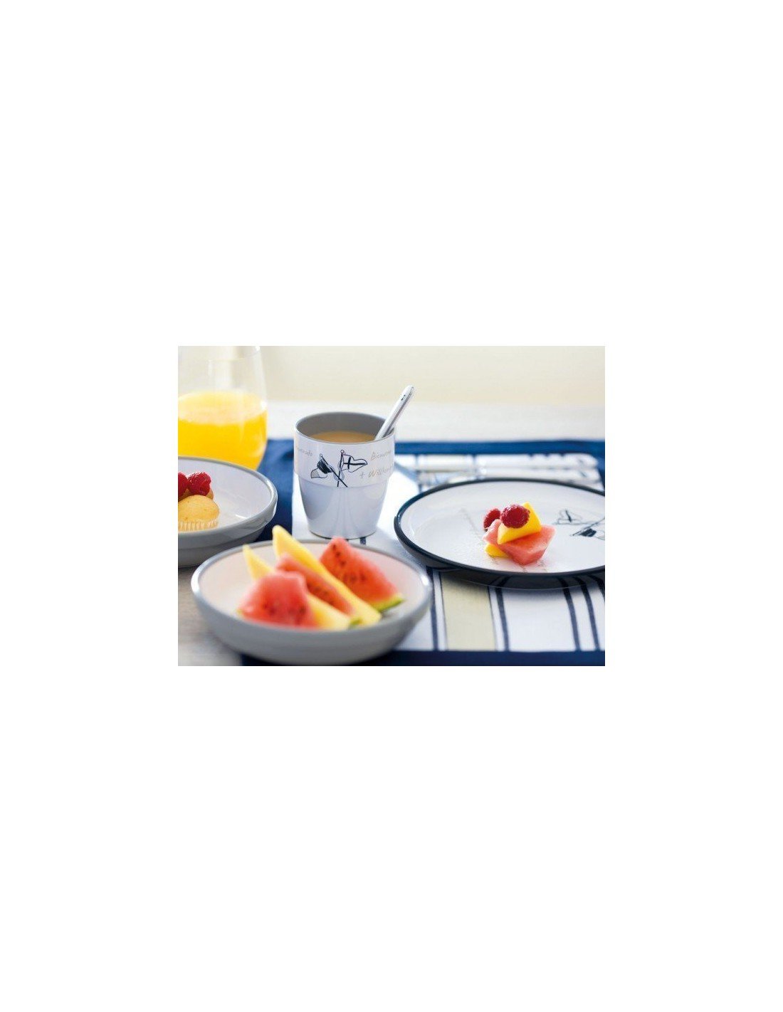 Puede encontrar otros accesorios náuticos que combinan con esta pieza, juegos de café y desayuno o las cucharitas de acero inoxidable, en nuestra web. Esta completa vajilla de melamina tiene gran variedad de accesorios marineros para la mesa que aseguran un agradable confort a bordo.